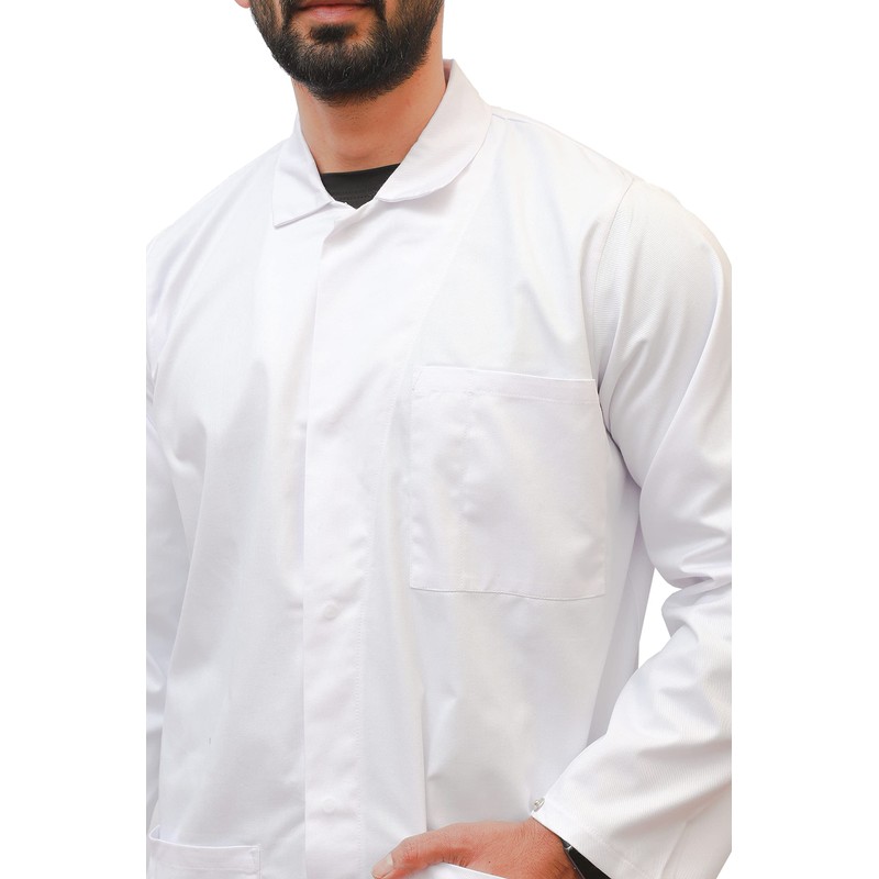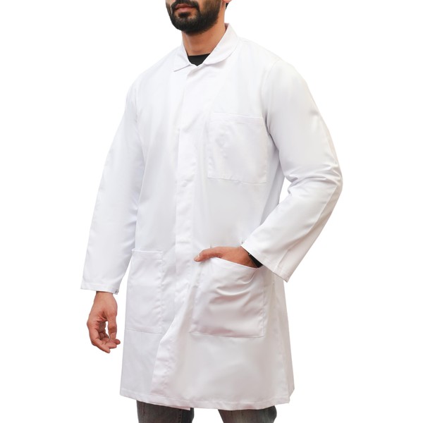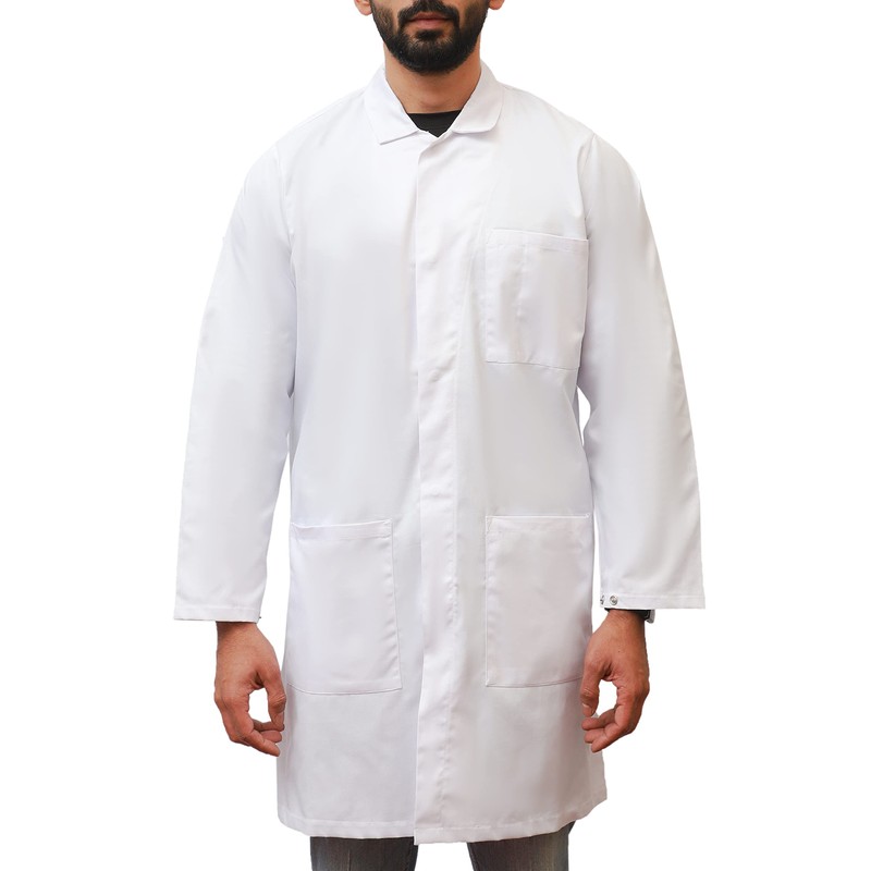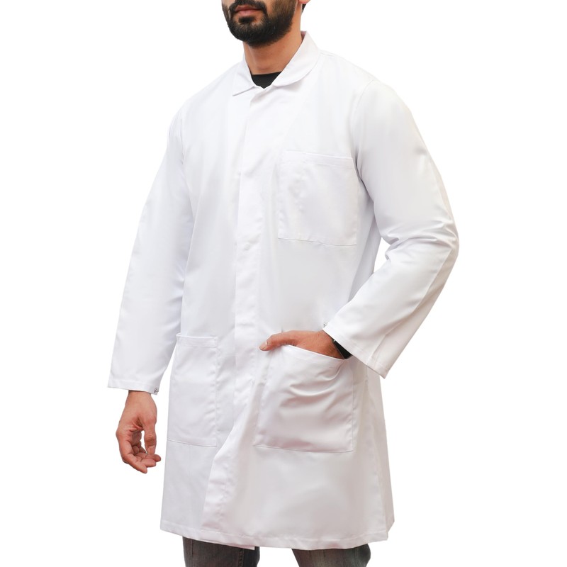 White Lab Coat Work Coat Lab Coat Doctors Coat Work Coat Multipurpose, Laboratory, Students, Pharmacy, Warehouse, Butchers or for Any Professional Use. 65% Polyester, 35% Cotton LBC-FL Durable and Long Lasting 65% Polyester 35% Cotton Pockets and Stud Buttons Make it Suitable for all Work Environments.