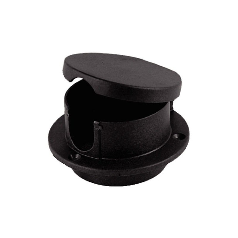 Perko's high impact white polymer rope deck pipe. UV stabilized, fiber reinforced with hinged snap-down cover. Hinge design allows open cover to lay flat. Maximum rope size: 7/8" / Flange O.D.: 3-3/4".