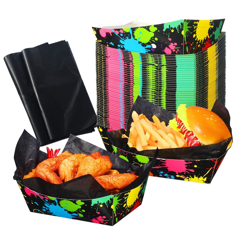 - Package Includes: you will get 50 pieces of rainbow neon glow food serving trays and 50 food wrap papers, sufficient quantity can meet your daily needs and replacement, enough to hold party appetizers and catered food to create a pleasant atmosphere