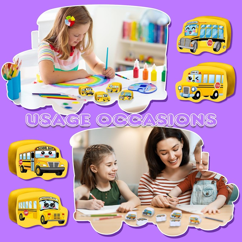 - School Bus Shape Design: the school bus shape of the mini erasers for kids adds a fun element to your erasing experience, they are visually appealing with cute faces, not only can be applied to erasing typos, but also can serve as a counting toy for children