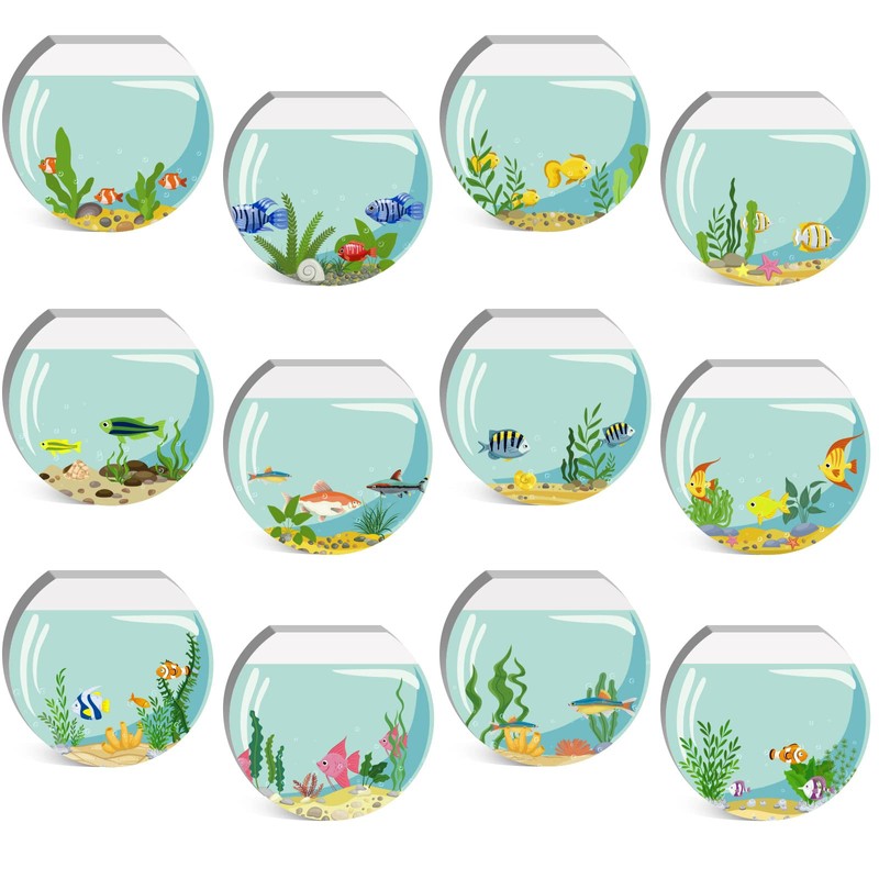 PerKoop Perkoop 12 Pack Funny Sticky Notes 3.15 x 3.15 Inch Fishbowl Note Pads Cute Tropical Fish Self Stick Note Pads Valentines Office Gifts, 50 Sheets/pad, 600 Sheets in Total