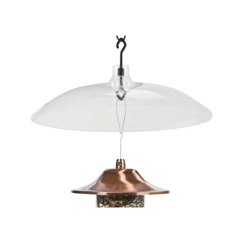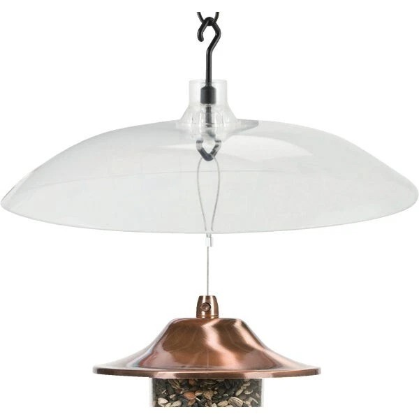 16-inch diameter transparent shield can either be hung (squirrels weight will tip the shield, forcing the animal off) or mounted on the pole (blocks the animals climb up the pole). All hardware included.