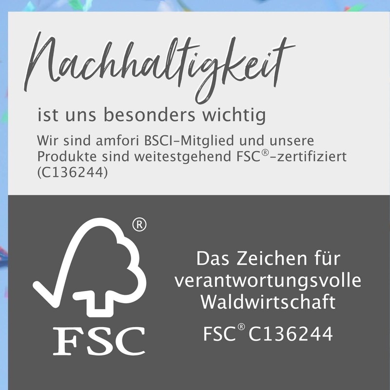 - Certified – we take our responsibility towards people and nature very seriously. Our cards are largely FSC certified (FSC C136244) to ensure sustainable forestry.