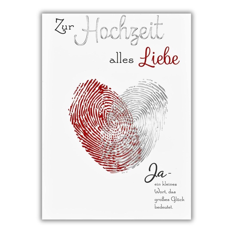 Perleberg - Unique wedding card with thumb prints, beautiful heart card, 11.6 x 16.6 cm, for wedding envelope in red, high-quality & special wedding cards, white, 7910032-2