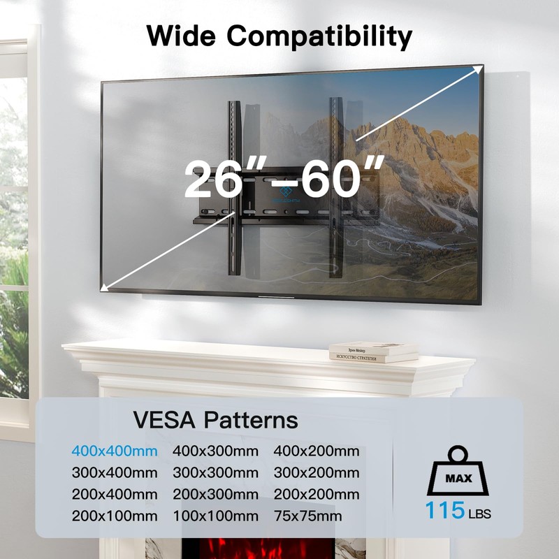 - UNIVERSAL COMPATIBILITY This TV mount fits most 26-47 Inch TVs on the market today VESA is compatible with 75x75mm 100X100mm 200X100mm 200X200mm 300X200mm 300X300mm 400X 200mm 400X300mm 400X400mm