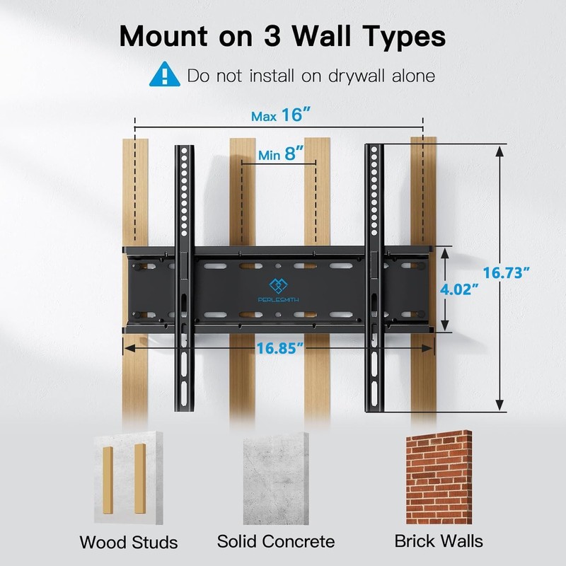 PERLESMITH Fixed TV Wall Mount Bracket, Low Profile Design for Most 26-60 inch LED LCD OLED-4K Flat Screen TVs up to 115lb, Ultra Slim Fixed TV Mount with Max VESA 400x400mm Fits 16 inch Wood Stud