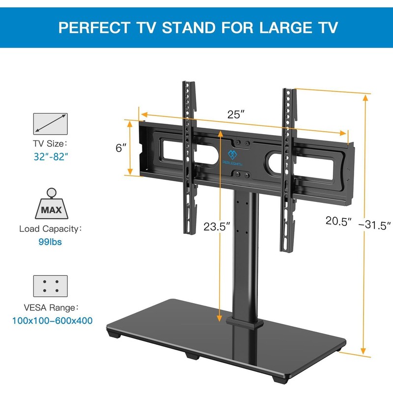 PERLESMITH Universal TV Stand Table Top TV Base for 32-82 inch LCD LED OLED 4K Flat Screen TVs-Height Adjustable TV Mount Stand with Tempered Glass Base, VESA 600x400mm, Holds up to 99lbs PSTVS11