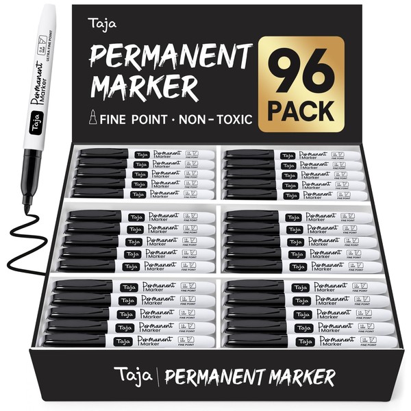 Permanent Markers Fine Tip, 96 Pack Black Quick-Drying and Fade-Resistant Permanent Markers Bulk Set for Writing and Drawing on Wood, Plastic, Metal, Glass, Stone, Ideal for Office School Supplies