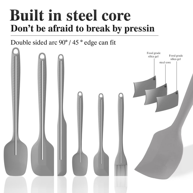 Permanent Warranty Silicone Spatula Set of 6 Heat Resistant 600 Food Scraper for Baking Cooking Mixing Scraping Nonstick Cookware Kitchen Utensils (Grey)