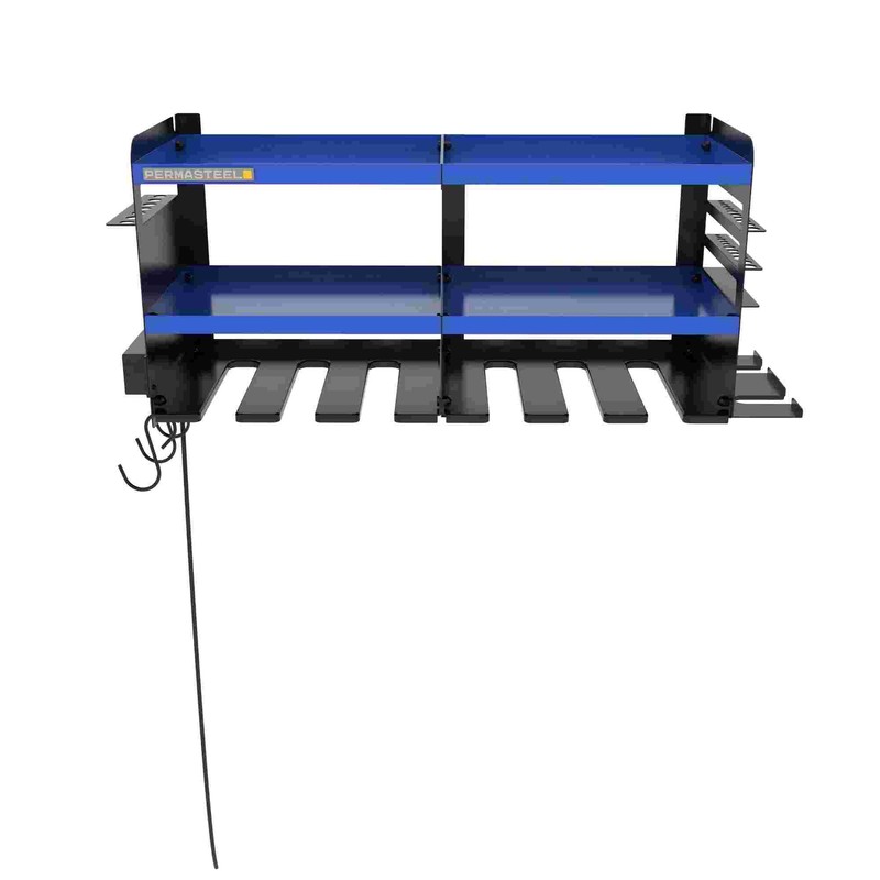 Permasteel Power Tool Organizer Wall Mount - 150 Lbs Load 3-Layer Heavy Duty Metal Storage Rack with Charging Station, Holds 6 Drills, 9 Hand Tools and 16 drill bits for Garage and Workshop, Blue