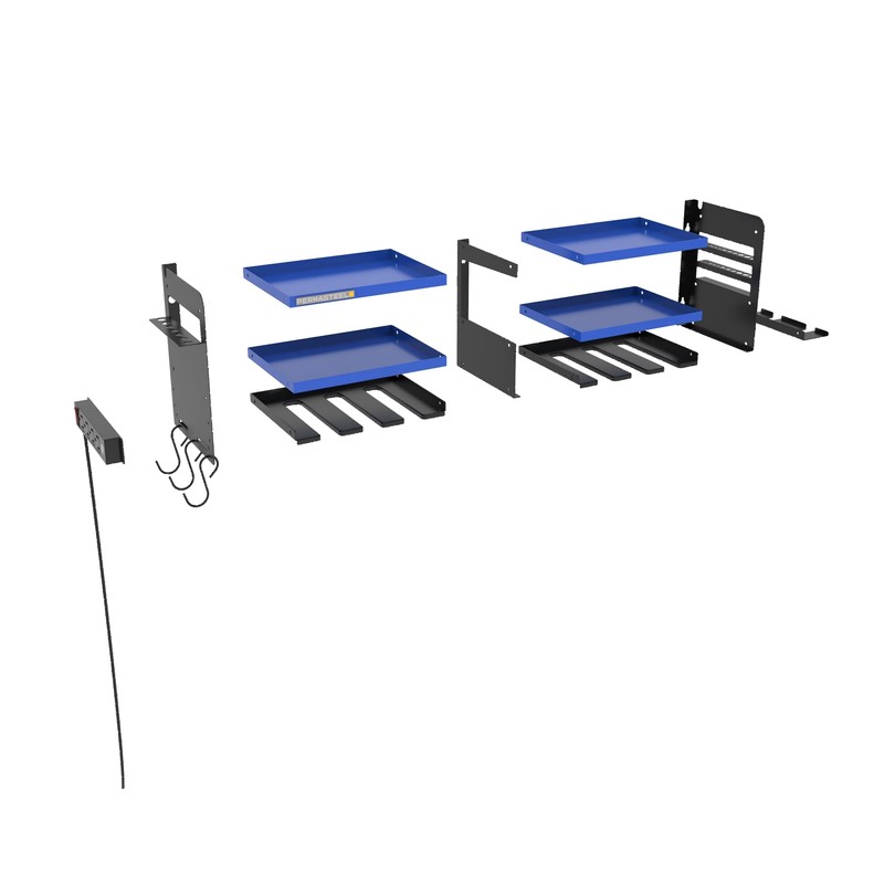- 【Organize & Optimize Your Space】The organizer features six slots to hold your power tools, four shelves, and a four-outlet power strip with two USB ports. Side holders for drill bits, hand tools and versatile S-hooks provide additional hanging storage for tools, cords, or other accessories