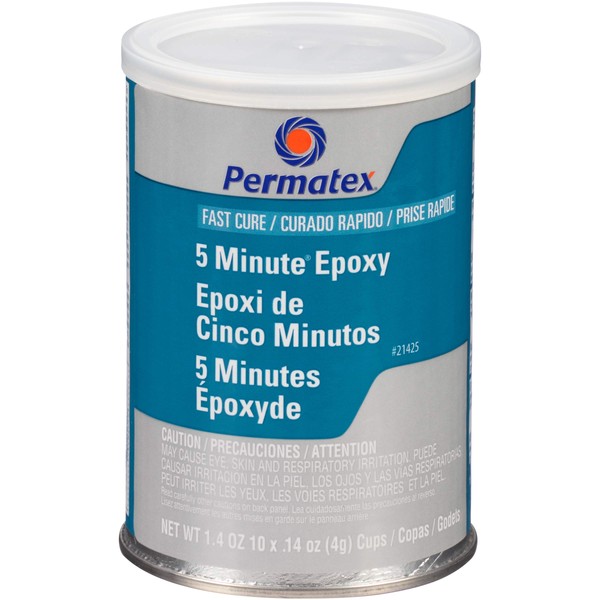 Permatex Fast Cure Epoxy comes with convenient premeasured epoxy mixer cups resulting in no mess, no guess, and no waste. Ideal for bonding glass, hard plastics, rubber and metal. Bonds in 5-15 minutes. Grey adhesive has excellent chemical resistance. Fills porosities and can be used to build up worn parts. Permatex offers convenient solutions for a wide range of bonding applications. Available in many packaging configurations, Permatex epoxies are versatile and easy-to-use. From general-purpose to material-specific, Permatex offers a formulation that will work for you.