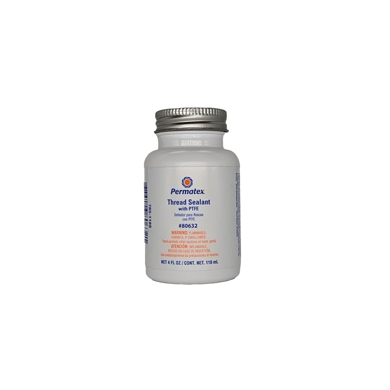 Permatex Thread Sealant with PTFE (Polytetrafluoroethylene) is an economical general-purpose fitting sealant that seals and resists pressure in air, oil, diesel fuel and hydraulic systems, outperforming tapes and pipe dopes. With a temperature range of -65 degrees fahrenheit to 300 degrees fahrenheit it remains pliable at higher and lower temperatures and also resists common shop fluids. Suggested Applications: Air conditioning fittings, temperature sending fittings, hydraulic fittings.