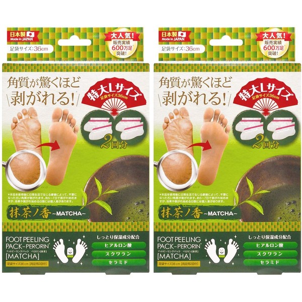 Perorin Foot Peeling Pack, 2-Package Set, Each Package Has Enough for 2 Peels, Matcha, Large Size, 14.2 Inches (36 cm)