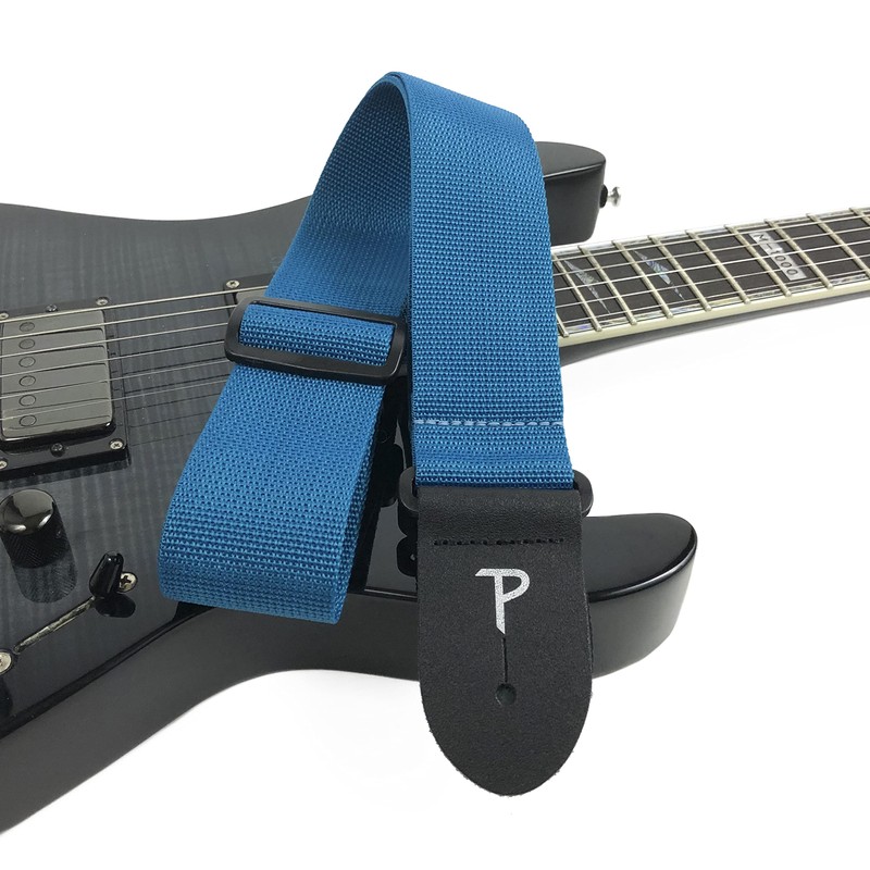 Perri's Leathers Ltd - Correa de guitarra - Nailon - Azul - Extremos de piel ajustables - Para guitarras acústicas/eléctricas/bajo (NWS20-959)