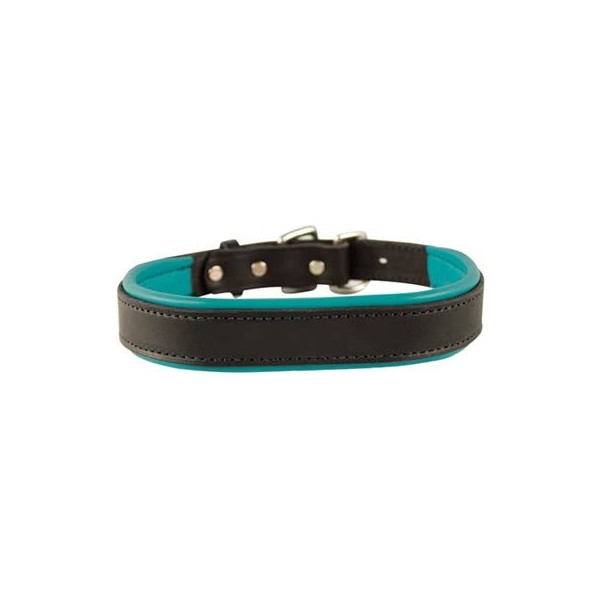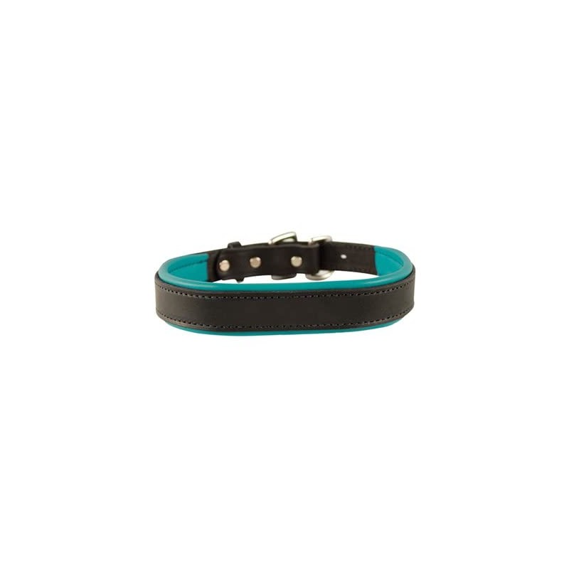 Perri's Padded Leather Dog Collar, Black/Turquoise, Medium/1" x 21" - fitting dogs with 12 - 16" necks