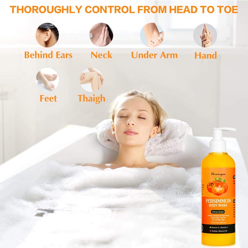 - Refresh and Purify Strong Smell: Hoveimpee persimmon body wash infused rich persimmon extract (mainly tannin) which help eliminate smelly odor, effectively control body odor especially when you are sweating.