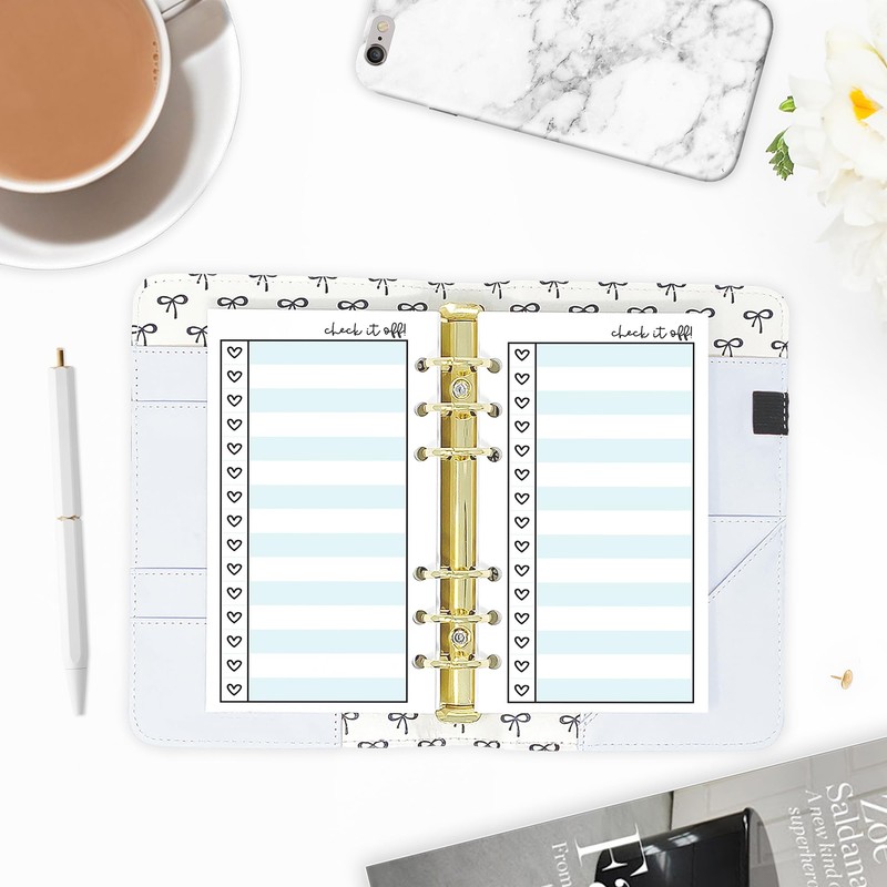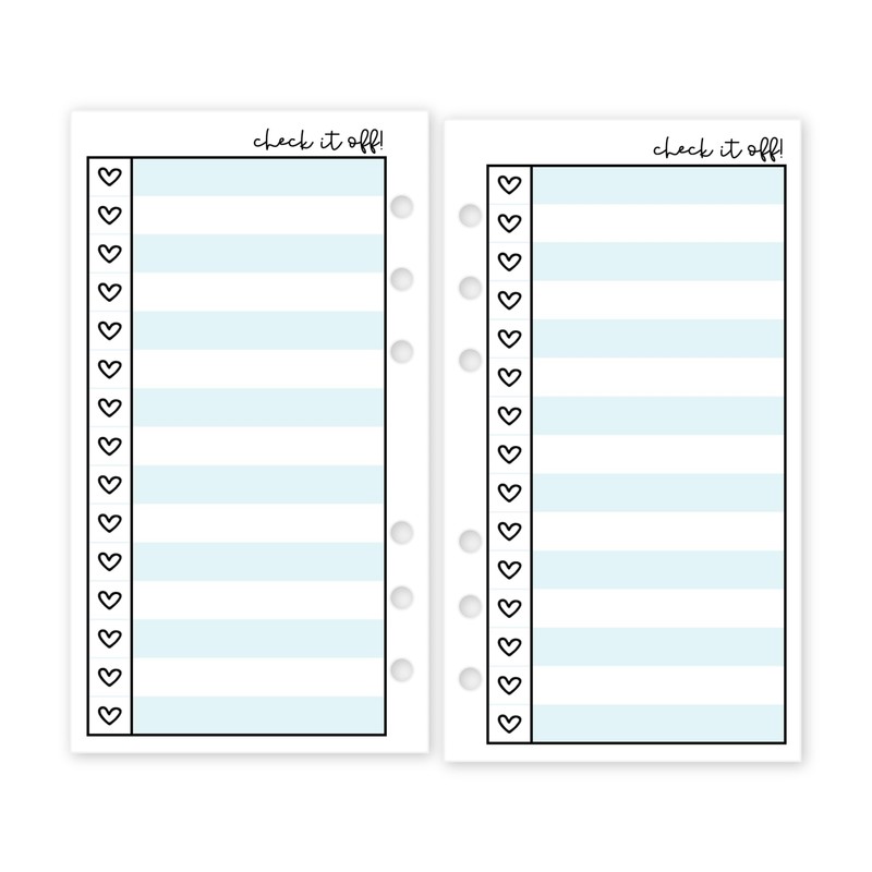 Personal Heart Checklist Planner Insert Refill, 3.74" x 6.73" / 95mm x 171mm, Pre-Punched, Fits 6-Ring Binders, Your Choice of Quantity (Sky)