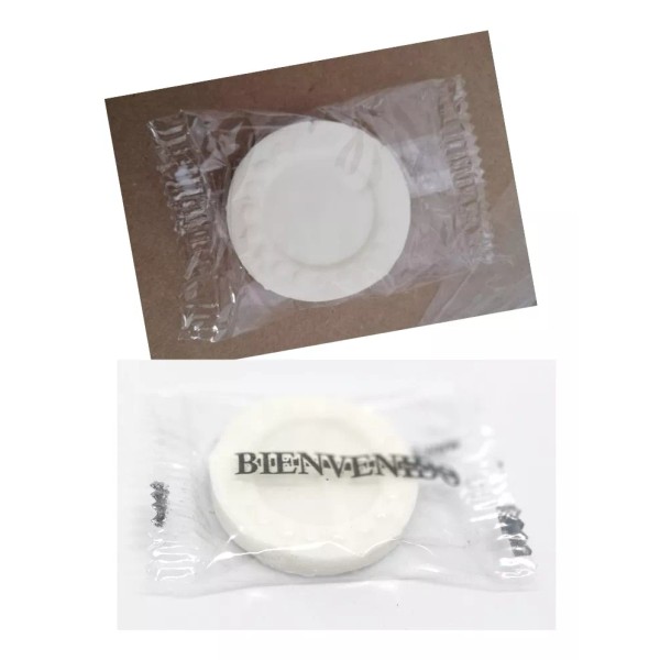 POR EL MOMENTO SE ENVIA ENVOLTURA TRANSPARENTE TOTAL CON JABONCITO BLANCO REDONDO TROQUELADO