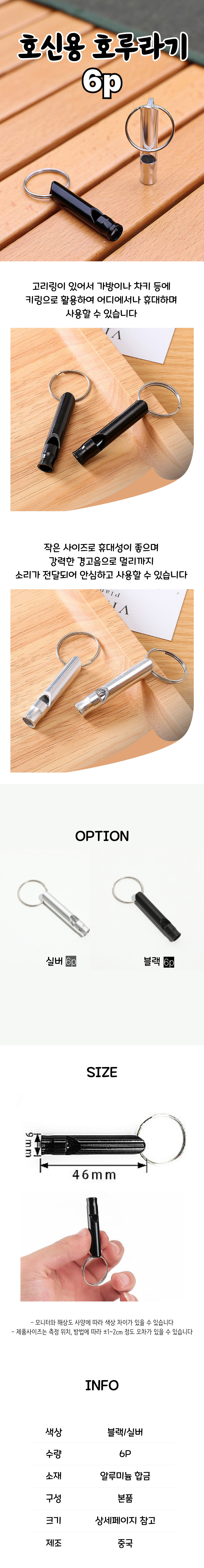 Personal Safety Whistle 6 Units (3 Black, 3 Silver) 1454 55WT 2ea