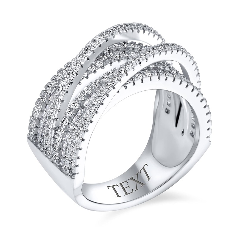 Personalise the Art Deco Style with Pave AAA CZ Crossover Criss Cross Costume False Stacking Broadband Ring with 4 Rows Baguette Multi Band for Women, Silver Plated with Rhodium, Customisable, Cubic