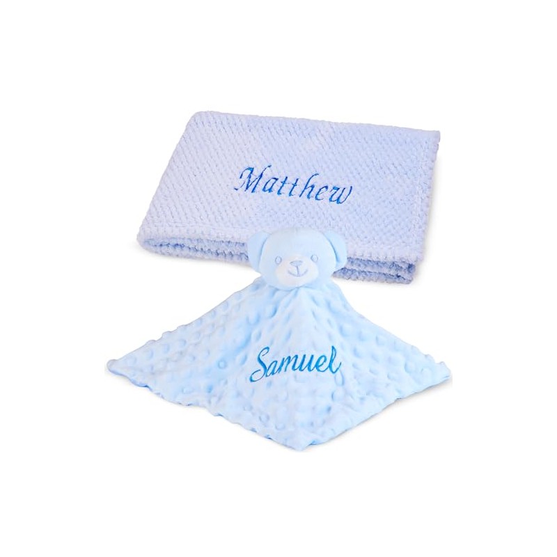 - Variety & Versatility: Choose from our range of personalized baby blankets and comforters in blue, pink, grey, or white. With options for both boys and girls, our sets offer style and charm for every baby, ensuring a perfect match for any preference.