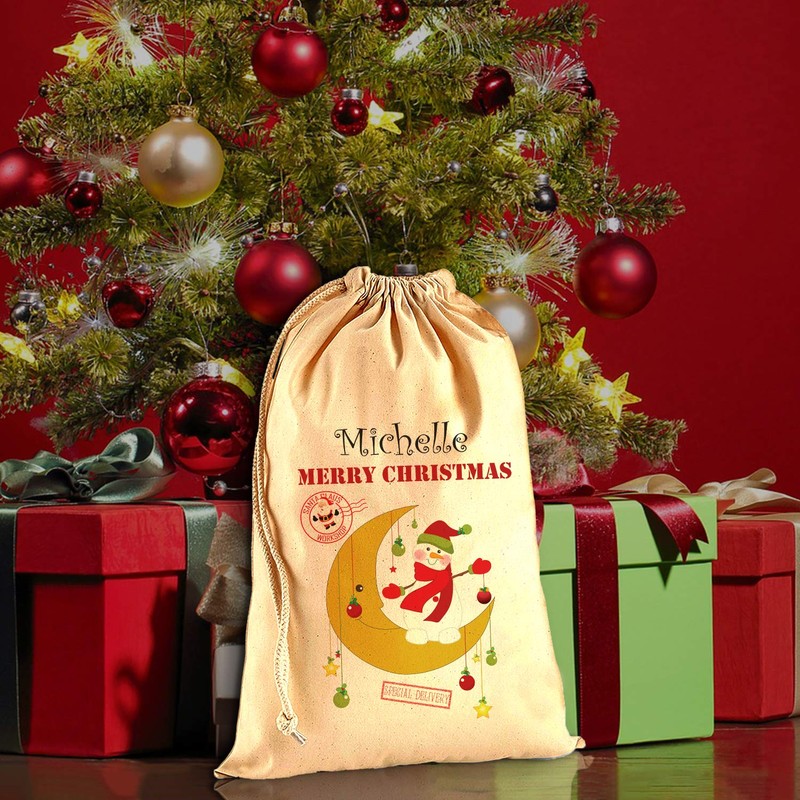 - ❄ PERSONALISED CHRISTMAS SACK - Pleasant surprise for your family or friends to receive their Christmas package with their name on it. Use Customize Now button to send name for printing;