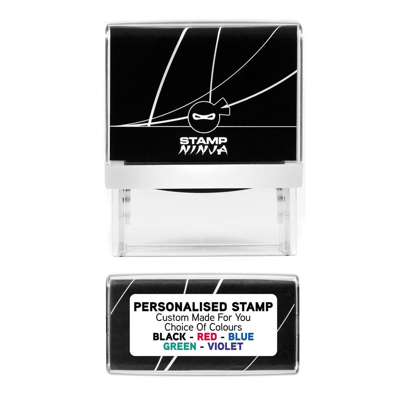Personalised Custom Made Self-Inking Company Business Address Rubber Ink Stamp - 48mm x 18mm (Four Lines of Text)
