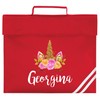 Personalised Girls Floral Unicorn Book Bag for Back to School Primary Reception Kids Custom Name New Term Reading Folder, One Size, Red