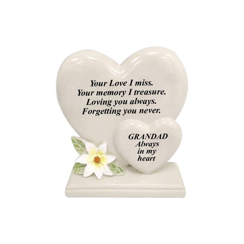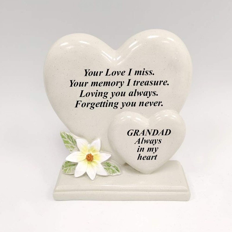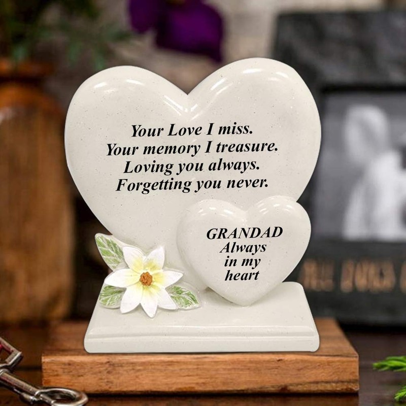 - [Inscribed with a Sympathetic Quote] The plaque is engraved with a special sentimental quote for your loving grandad. It says, “Your love I miss. Your memory I treasure. Loving you always. Forgetting you never. GRANDAD Always in my heart”