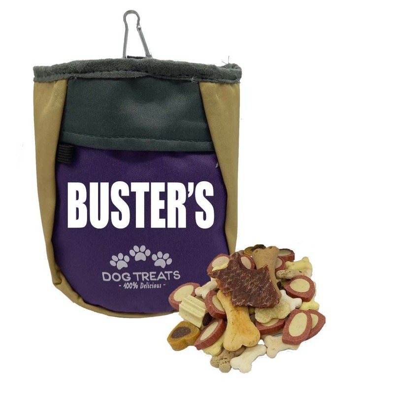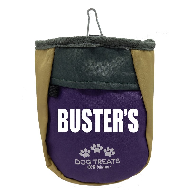 Personalised Multi Colour Khaki Dog Treat Drawstring Snack Container Bag Includes Doggie Reward Treats