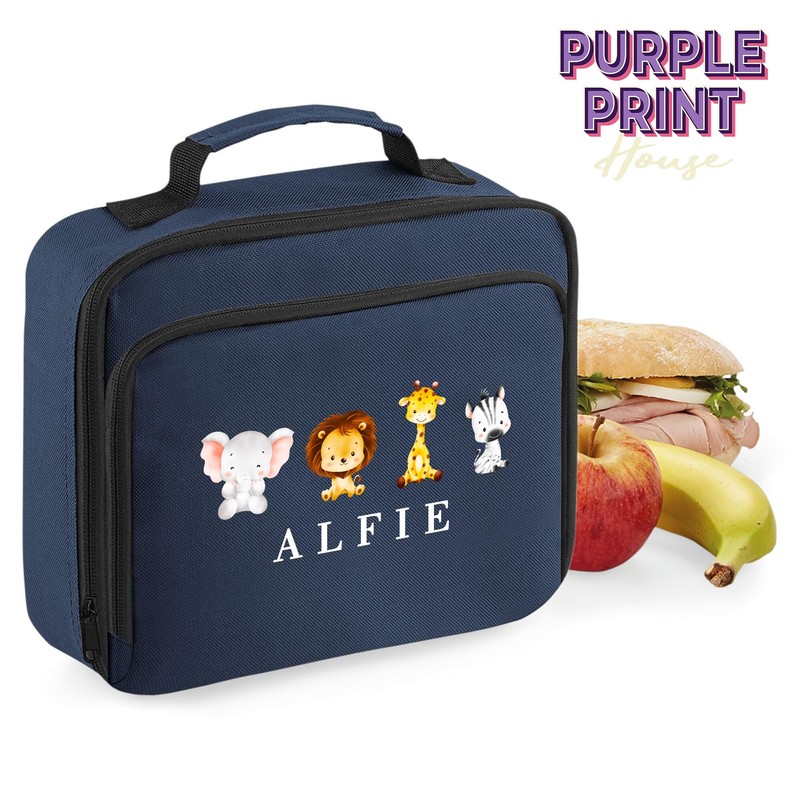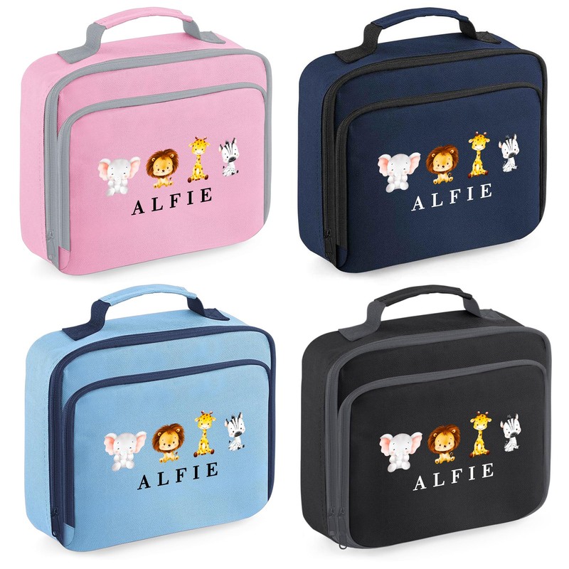 - This personalised safari lunch box features an adorable jungle animal design with elephant, lion, giraffe and zebra?perfect for boys and girls at nursery, school or on trips. Add your child?s name and make lunchtime wild and fun every day.