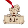Personalised Staffy Dog Christmas Tree Bauble, Peeking Design, 9.5W x 9H cm, Oak Veneer Wood Decoration with Red Ribbon (Decoration with Gift Box)