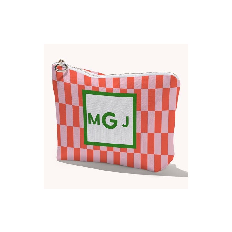 Personalization Universe Bright Check Monogram Personalized Makeup Bag