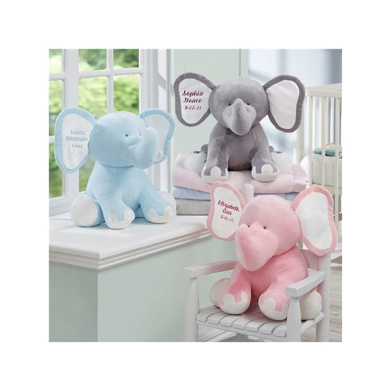 Standing an impressive 14" tall, our Personalized Jumbo-Sized Baby Elephant is an irresistible and impressive gift to welcome a very special new arrival! An absolutely unique and unforgettable gift to adorn baby's room today, and a cherished keepsake for years to come.