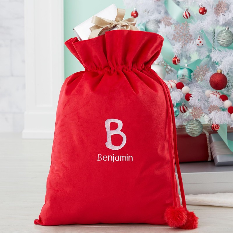 Personalization Universe Initial & Name Embroidered Red Santa Sack