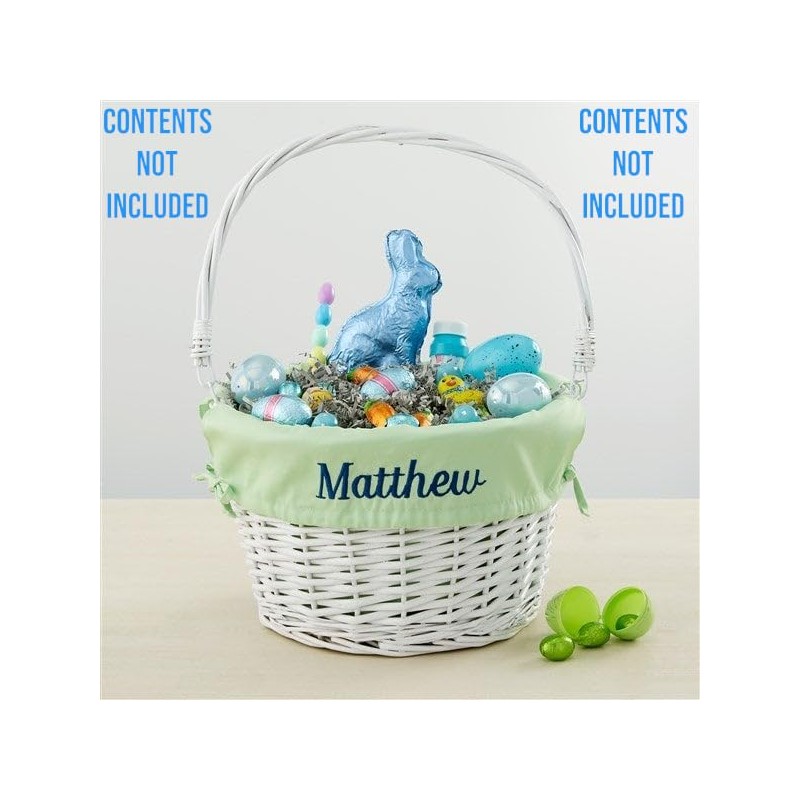 - Personalized Willow Easter Basket with Folding Handle - Have your child's name featured on their very own Easter basket. Choose from multiple font and thread color options to make it truly unique. Basket contents are not included.
