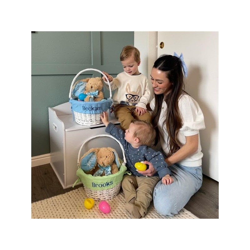 - Removable Colored Liner - The custom Easter basket comes with a removable liner that includes a tie closure. It's easy to clean, just spot clean when necessary. This product is not a toy. Natural wicker and metal hinges may have edges that are not suitable for babies.
