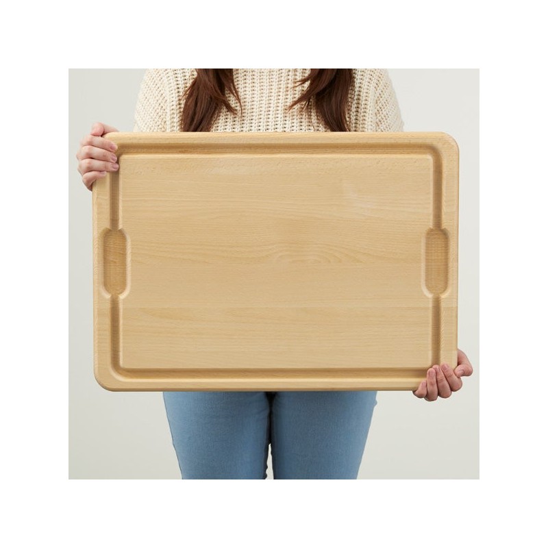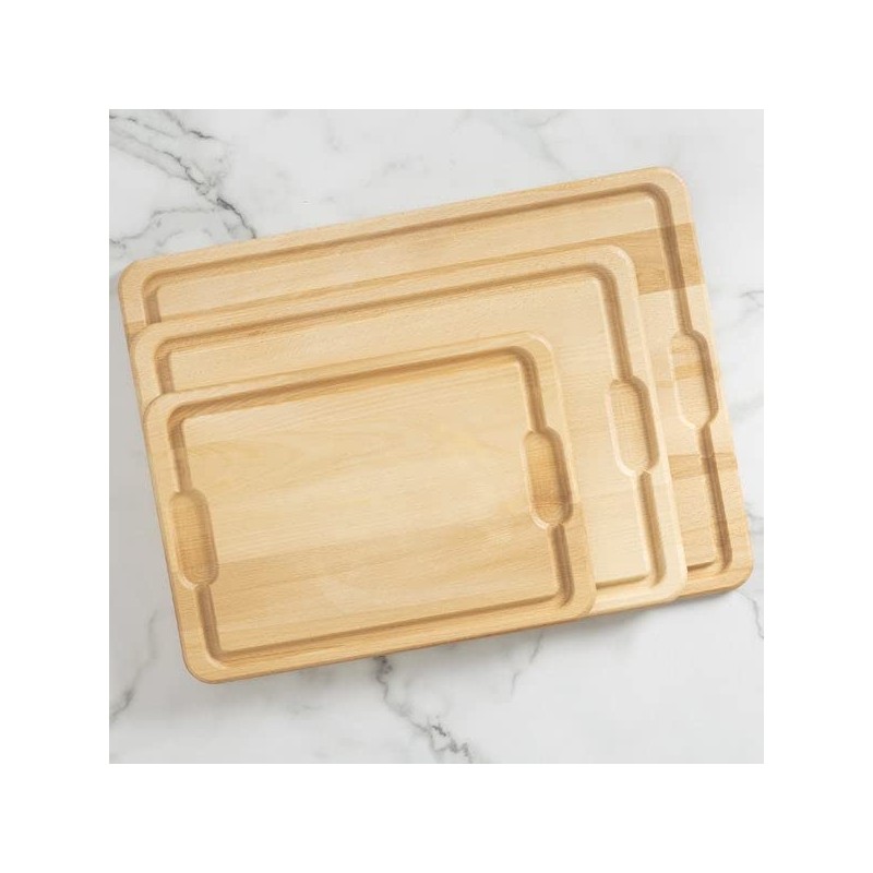 - Juice Drip Wells - Designed with juice drip wells to help contain liquids and prevent spills. Grip handles make this cutting board ideal for carving meats like briskets and ribs, or even serving charcuterie boards.