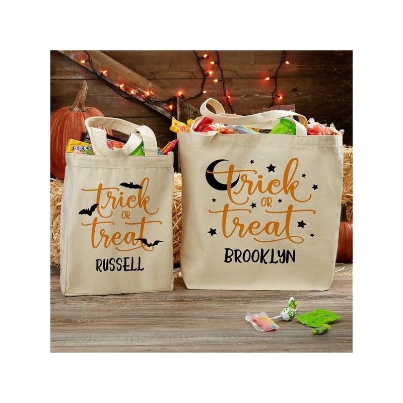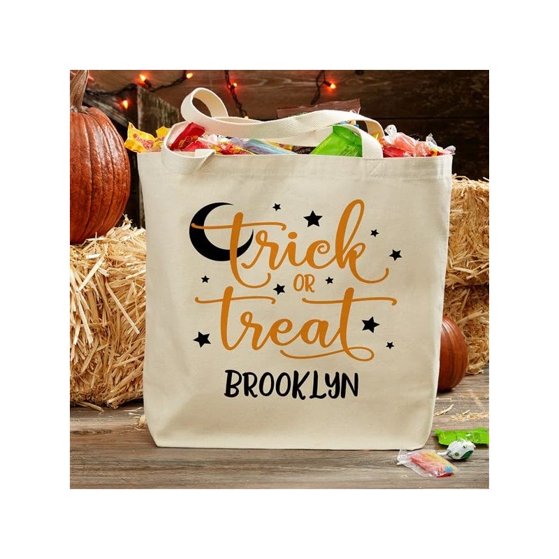- Personalization - This Halloween canvas tote bag can be personalized for free with any name, making it extra special for your child during trick or treating.