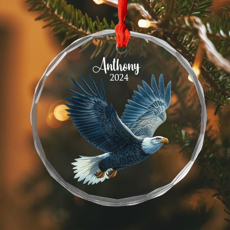 Personalized Bald Eagle Glass Christmas Ornament Gift, Unique Bald Eagle Xmas Ornament, Customized Year & Name Bald Eagle Lover Xmas Keepsake Ornament Gift, Bald Eagle Glass Christmas Ornaments 2024
