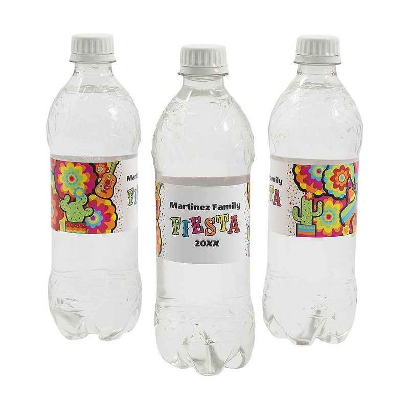 Personalized Colorful Fiesta Water Bottle Labels - 50 Pieces