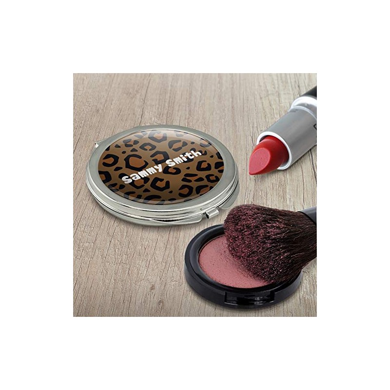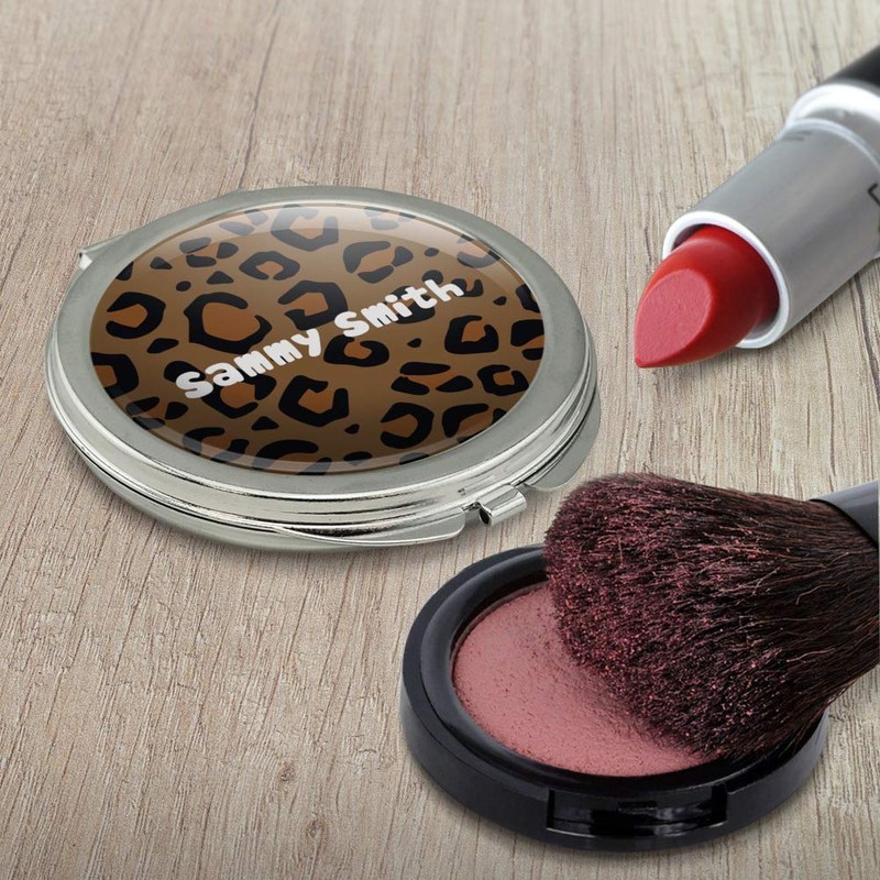 Personalized Custom 1 Line Leopard Animal Print Compact Travel Purse Handbag Makeup Mirror
