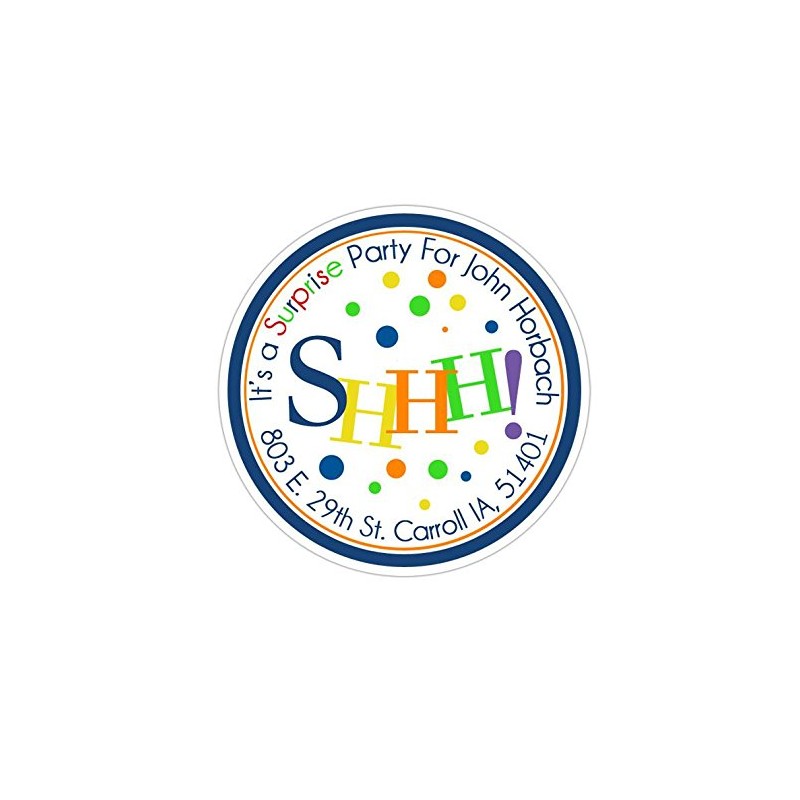 Personalized Customized Birthday Party Favor Stickers - Shh Surprise Party - Round Labels - Choose Your Size