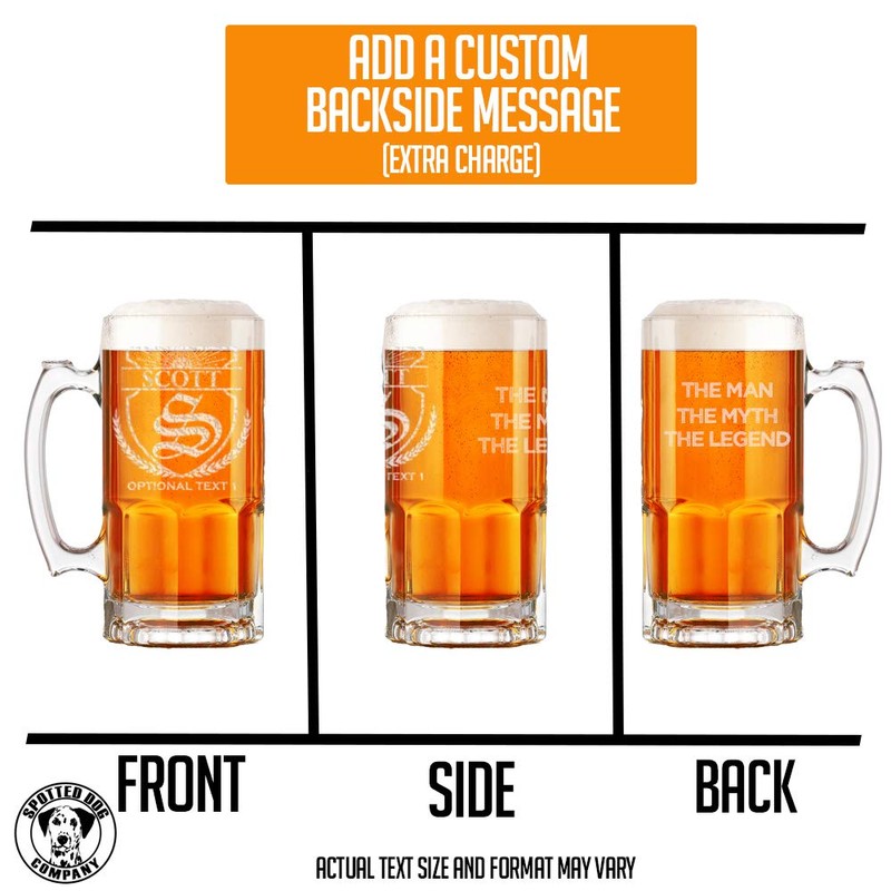 Personalized Etched Monogram 34oz Glass Beer Mug, Scott