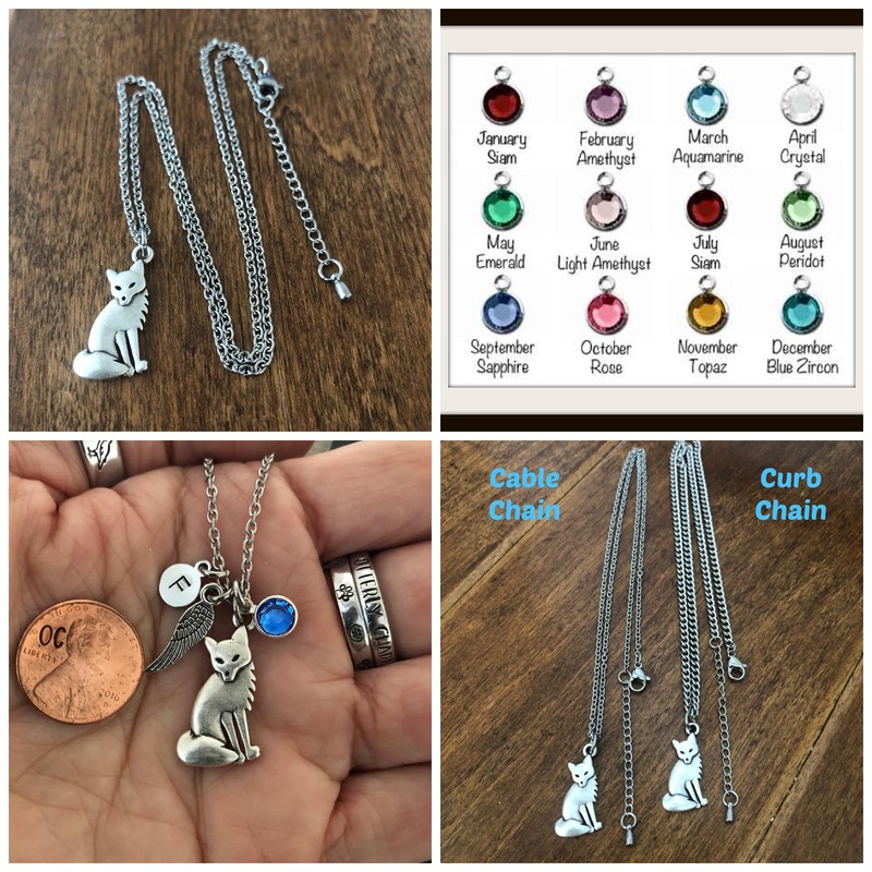 Personalized Fox Necklace with Optional Initial and Birthstone - Fox Gift for Men and Women - Unisex Chain Options