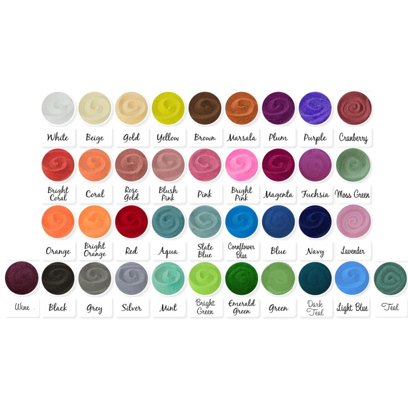 ♡ Sand colors shown in the photo are: Slate Blue, Aqua, Silver, and Rose Gold.