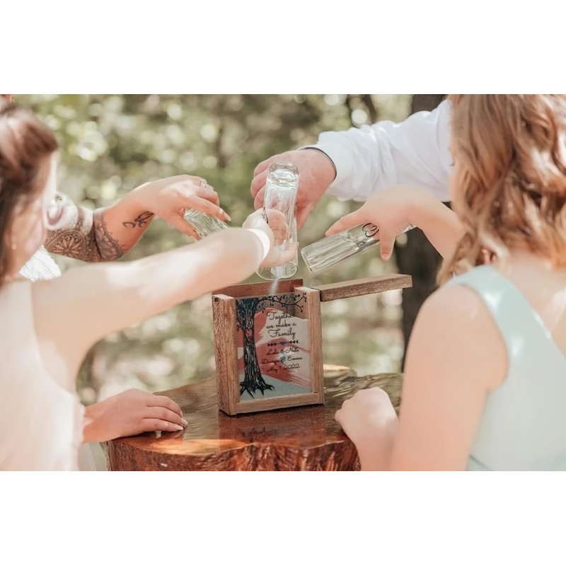 PERSONALIZED GLASS Sand Ceremony Set for Blended Family w SAND - INK Printed - Rustic Shadow Box Sand Ceremony Set - Unity Sand Set For Weddings - Unity Candle Alternative, Beach Outdoor Wedding Decor