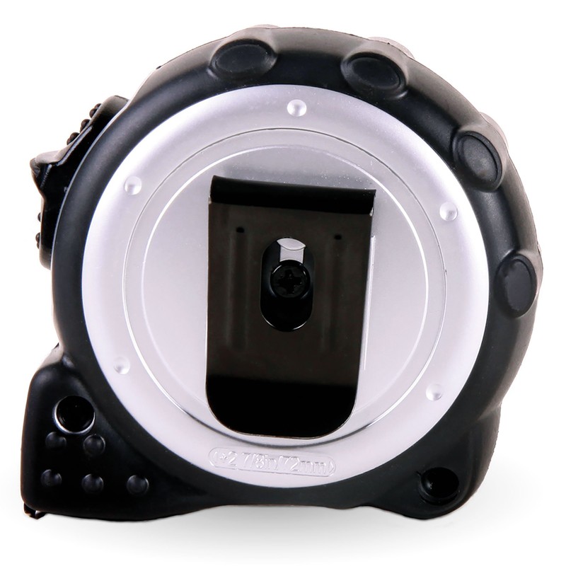 Our industrial tape measures are a strong plastic silver material with a durable black rubber coating wrapped around it to handle any job. Choose from one of our two sizes - 16ft or 25ft measuring tapes. Both options come with a belt clip so your tape measure is available whenever you need it! There is also a heavy-duty plastic wrist loop attached for extra portability. Each tape measure also comes with a lock feature to hold your measurement in place! Take measurements in metric centimeters or inches printed on the steel tongue.