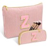 Personalized Initial Cute Pink Cosmetic Bag for Women, Graduation Gifts Makeup Pouch Organizer Bag for Girls 10-14, Travel Toiletry Bag for Her Mom Girlfriend Wife Teacher Birthday Gifts, Red Z